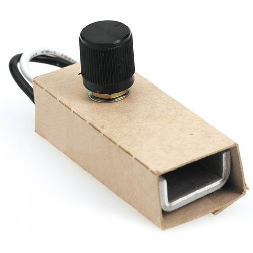 Product Descriptionp/pThis universal manual dimmer replacement kit will repair banker lamps or wall sconces. Installation is uncomplicated and easily performed. 270 degree control with positive on/off. Includes knob and wire nuts. 200 Watts Max. 5 Year Warranty. UL Listed. Product Dimensions: 5.75 x 1.625 x 1