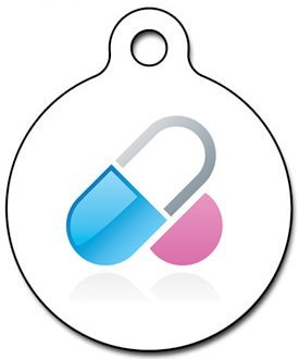 Buying This medication medical ID tag for dogs or cats is simple and effective and features a blue and pink pill motif. Safely indicate that your pet has a medical condition to anyone who may come in contact. Fully custom back lets you sale