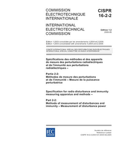 This part of CISPR 16 is designated a basic standard, which specifies the methods of measurement of disturbance power using the absorbing clamp in the frequency range 30 MHz to 1 000 MHz. CISPR 16-2 has been reorganised into 4 parts, to accommodate growth and easier maintenance. This first edition of CISPR 16-2-2, together with CISPR 16-2-1, CISPR 16-2-3 and CISPR 16-2-4, cancels and replaces the second edition of CISPR 16-2, published in 2003. It contains the relevant clauses of CISPR 16-2 without technical changes.