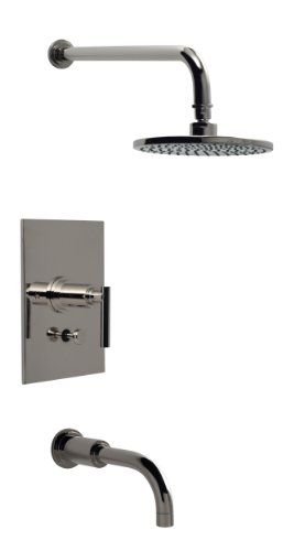 Pressure Balance Tub/Shower - Trim Only with Metal Bar Lever Set from the Modena III CollectionWith a nod to antiquity, Modena is modern and powerful. Tall and graceful, Modena captures the design heritage of the famous Italian city. This iconic style embodies the confident simplicity of 21st century design. Available in three bold styles.Precious metal finish groupAvailable in several finishesUses PB-3950 valveIncludes push button diverter, 8" deluge rain head, arm, flange, handle trim and tub fillerValve not included